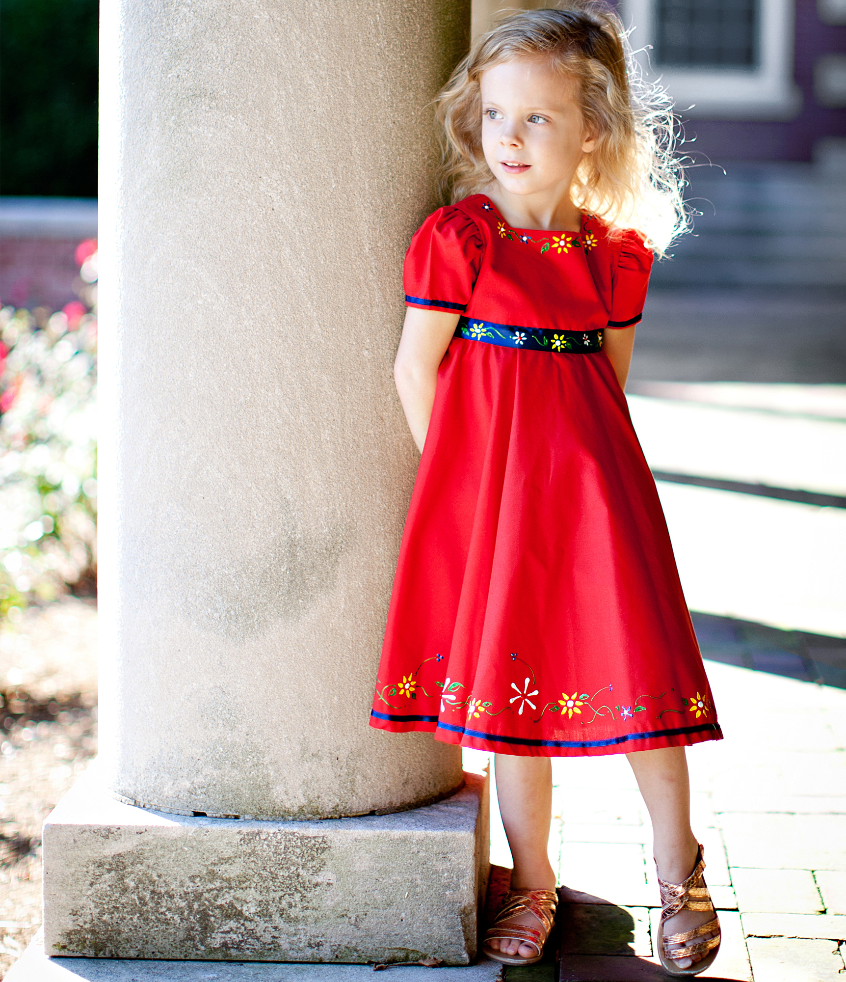 The NiGi Secret Garden collection is filled with beautiful surprises! The perfect gift for the amazing kid in your life, every piece of clothing produced by NiGi is a unique, handmade, hand-painted work of art. Designed and created in Trinidad & Tobago, no two pieces of NiGi kids clothing are exactly alike. Dress your special little one in something that is one-of-a-kind and reflects their individual personality. Share the gift of love. Give the gift of NiGi. Handmade & hand-painted Empire dress Puff Sleeves Flair skirt Satin bias Button-down back Cotton/Polyester blend Woven construction Each piece is unique Machine washable, easy care, iron on reverse Made in Trinidad & Tobago Family owned and operated company