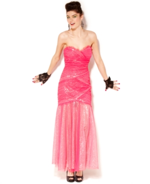 Roberta Juniors Dress, Strapless Sequin Tulle Mermaid Juniors Juniors' Clothing - Dresses